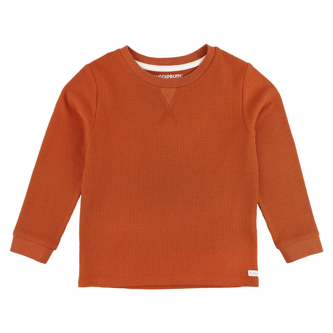 Boys Rust Waffle Knit Long Sleeve Crew Neck Shirt