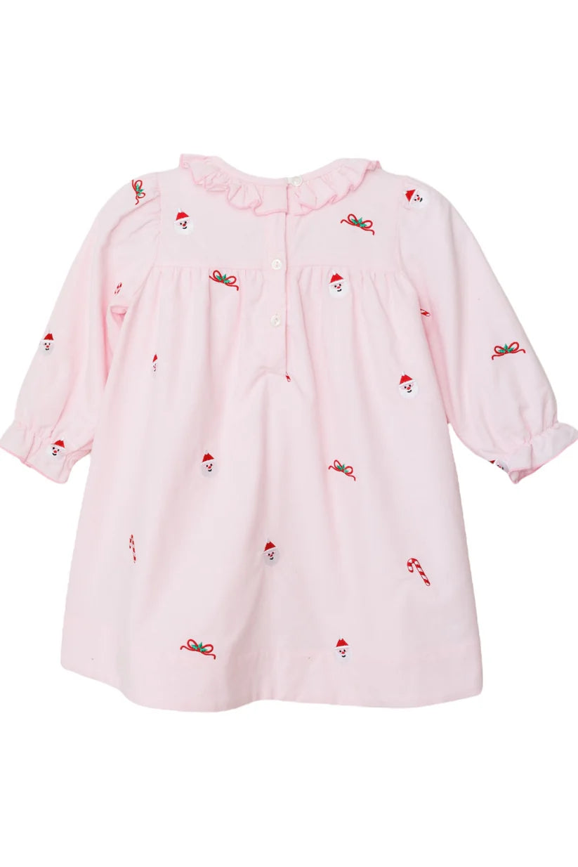 Crafted from luxurious pink velvet cord fabric, this Christmas Embroidery Dress features a beautiful holiday embroidery pattern and a delicate ruffle trim collar. Elevate your holiday wardrobe with this elegant and festive dress. Perfect for any Christmas celebration, this dress is sure to make a statement.
