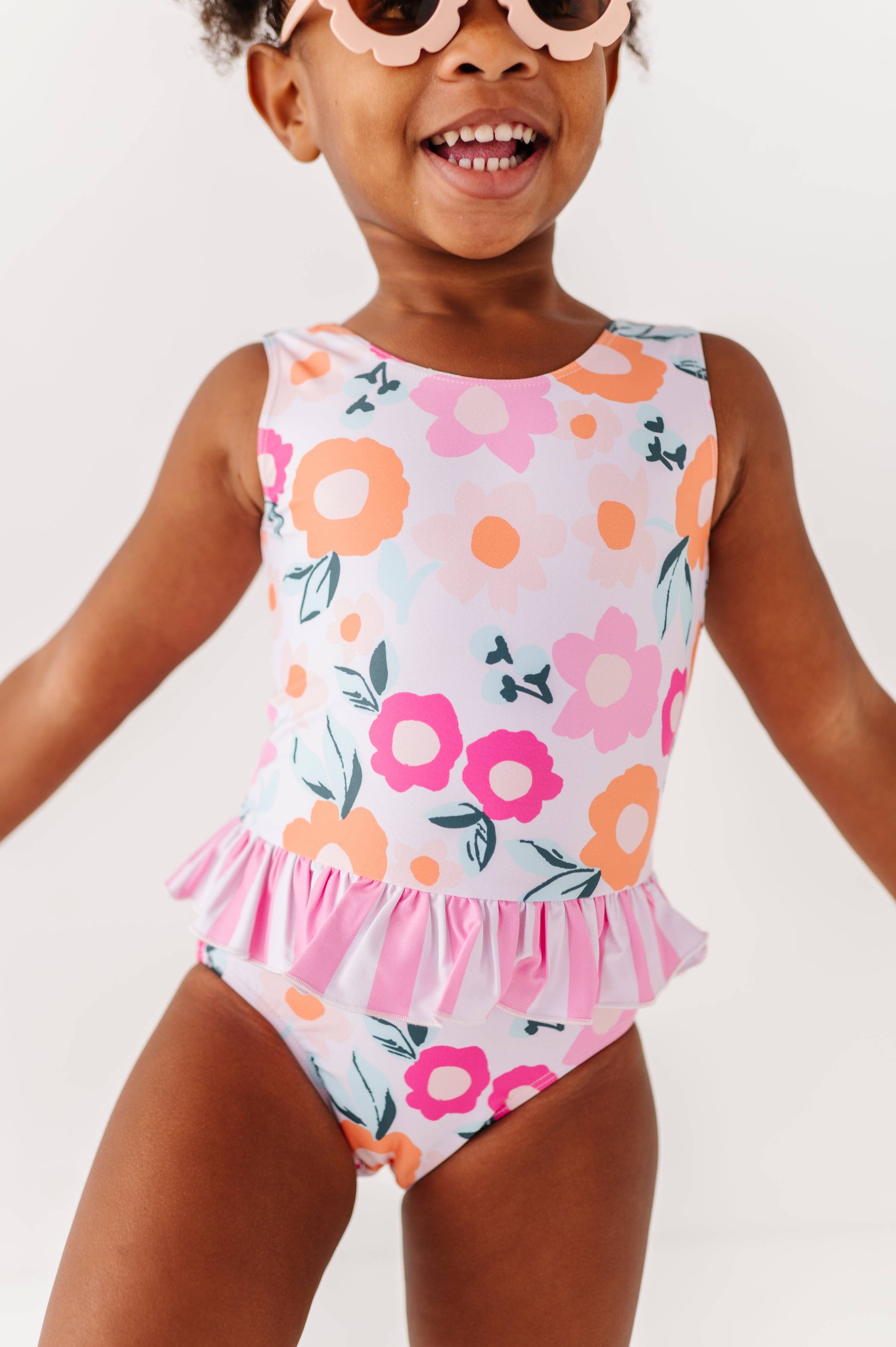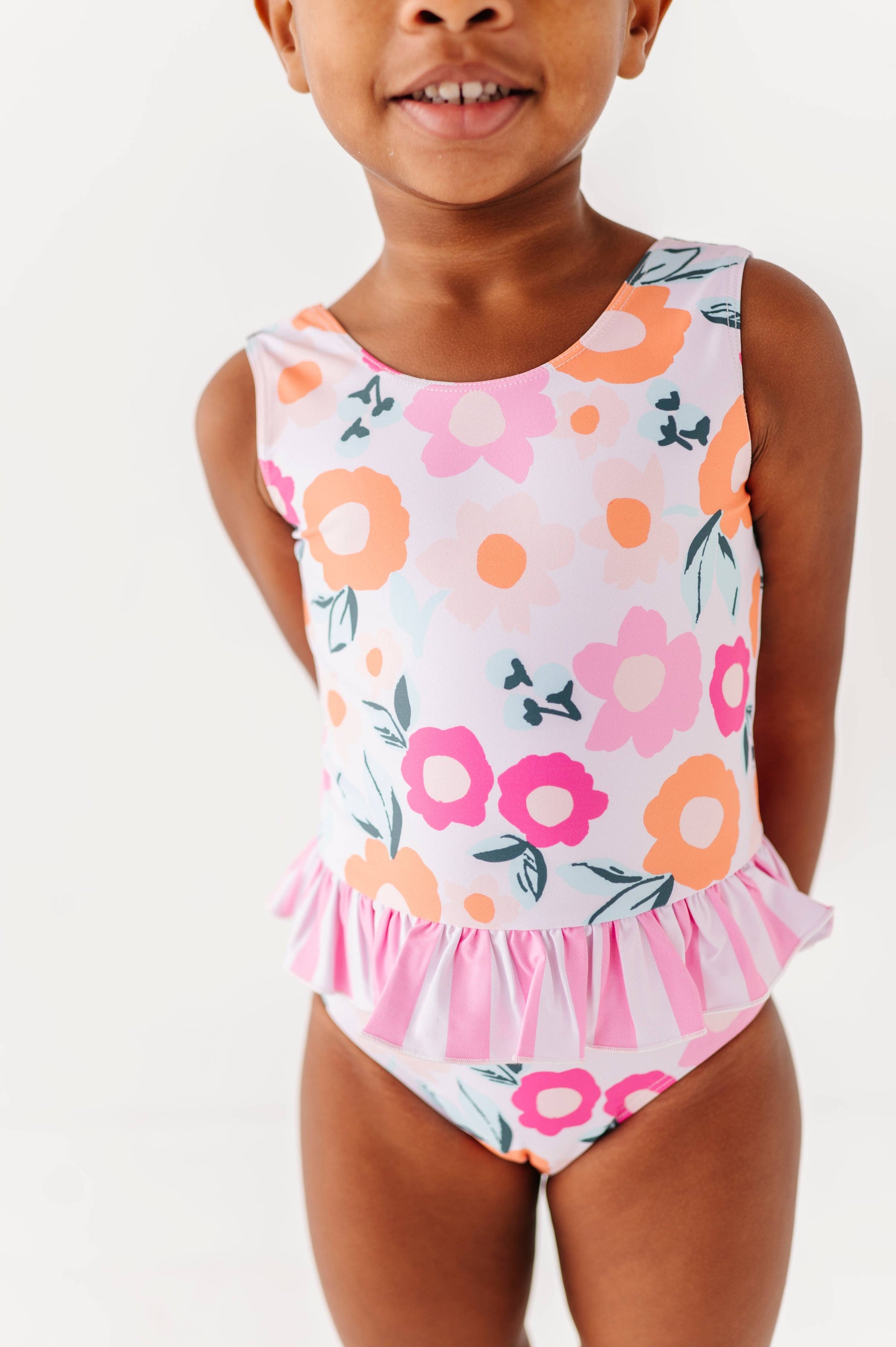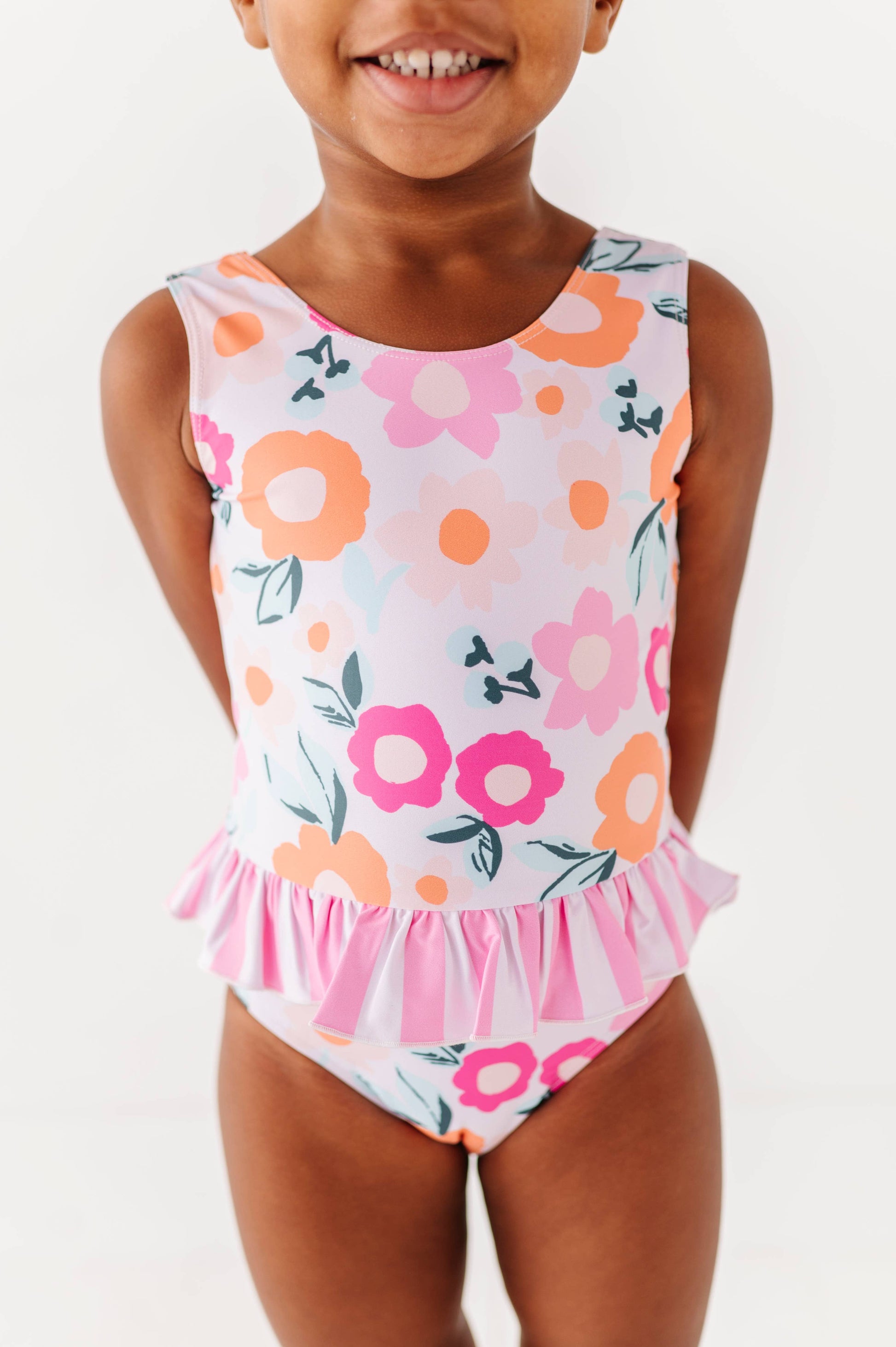 ☀️2025 SWIM IS HERE! Please read all info below before purchasing! ••••••••••••••••••••••••• SIZING: This swim set runs true to size and we recommend ordering any 2-piece swim based off of your child’s WAIST size and one-piece swim based off of your child’s pant LENGTH size. Traditionally we recommend NOT sizing up if inbetween sizes if you want the suit to fit snug when wet. Our models are all in their true sizes or a half size DOWN if in-between sizes. ••••••••••••••••••••••