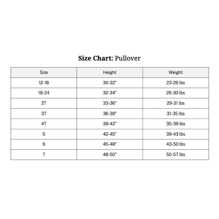 Our beloved pullovers are BACK! We've changed the fit, and added stretchy ribbed fabric around the neck and cuffs to make dressing your little one even easier. We hope you'll love this new version even more than the last!